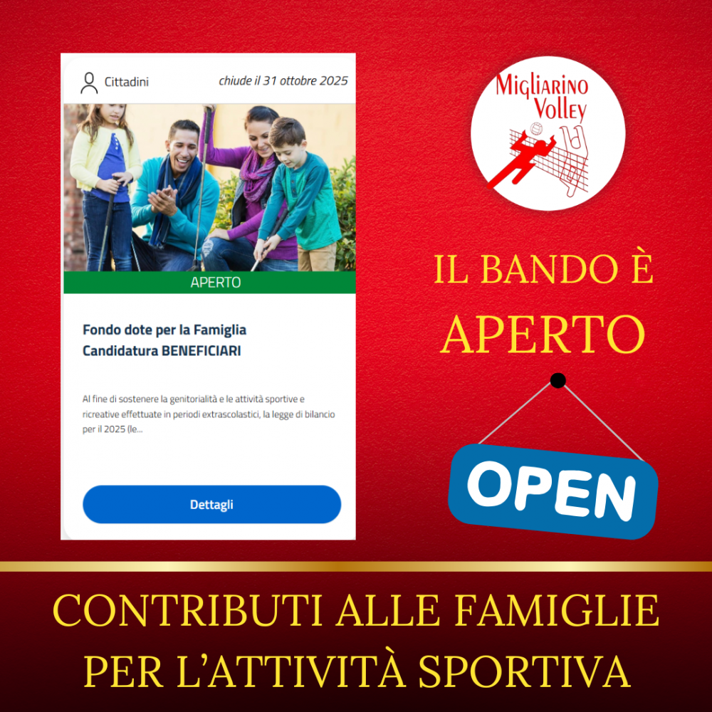 📢 Stanziato un fondo da 30 milioni di euro per il 2025, dedicato a incentivare l’attività motoria e uno stile di vita sano: con il FONDO DOTE FAMIGLIA viene garantito ai minori in condizioni non agiate l’accesso alla pratica sportiva, supportando le ASD, SSD, ETS e ONLUS di ambito sportivo con un...